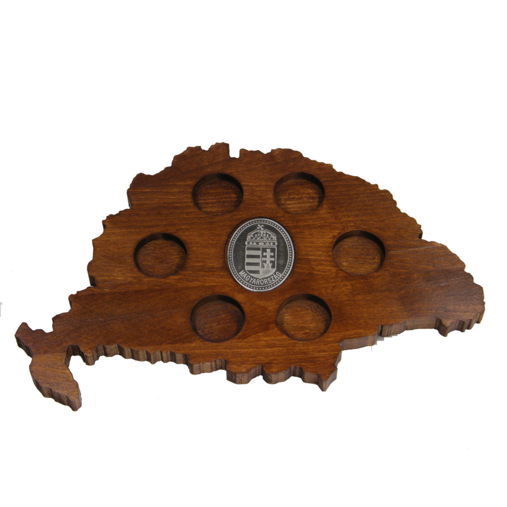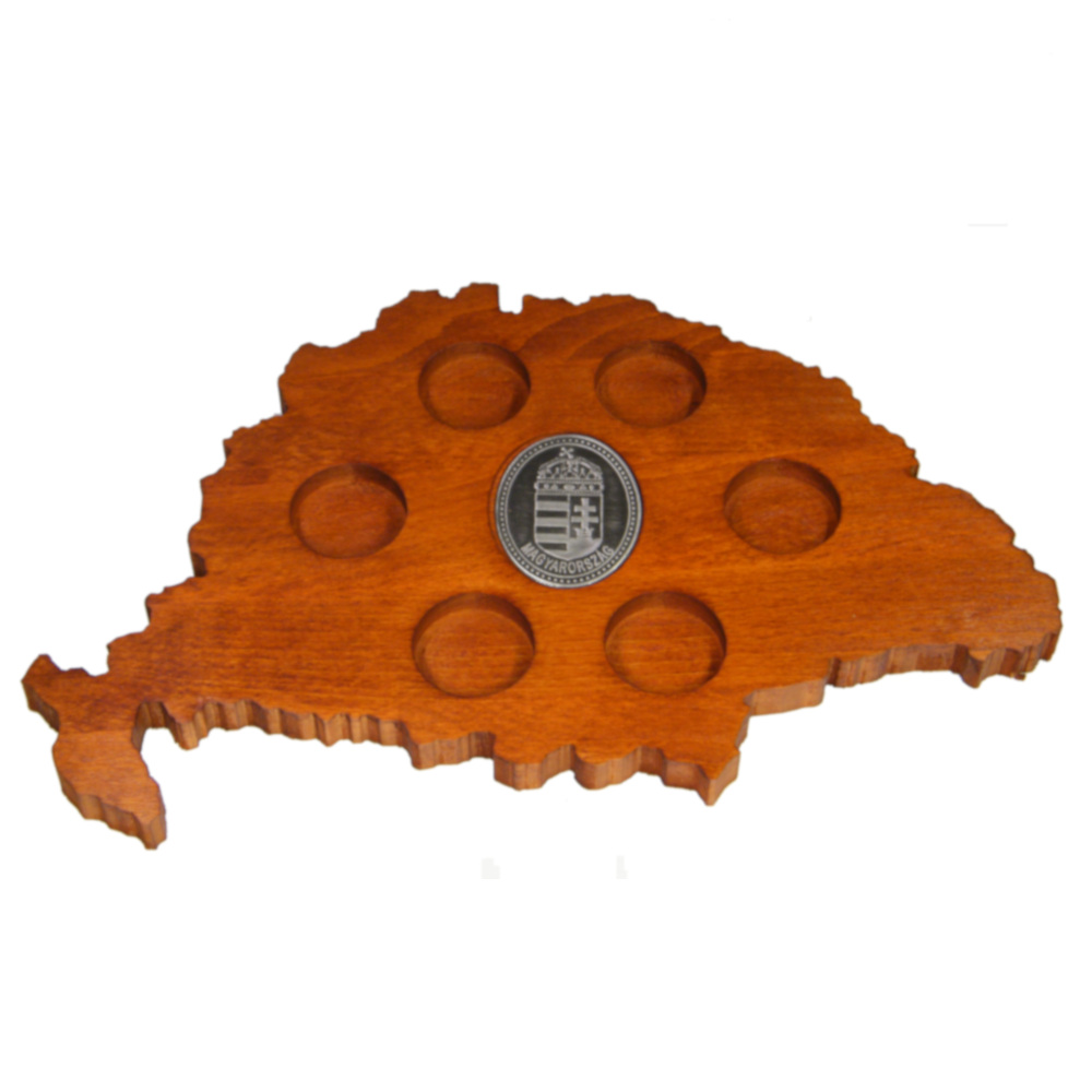 Magyarország - buli - barátok - magyar pálinka. Magyar pálinkához Nagy-Magyarország alakú pálinka kínáló, magyar címer ón matricával. Magyar bükkfából, hazai készítéssel.